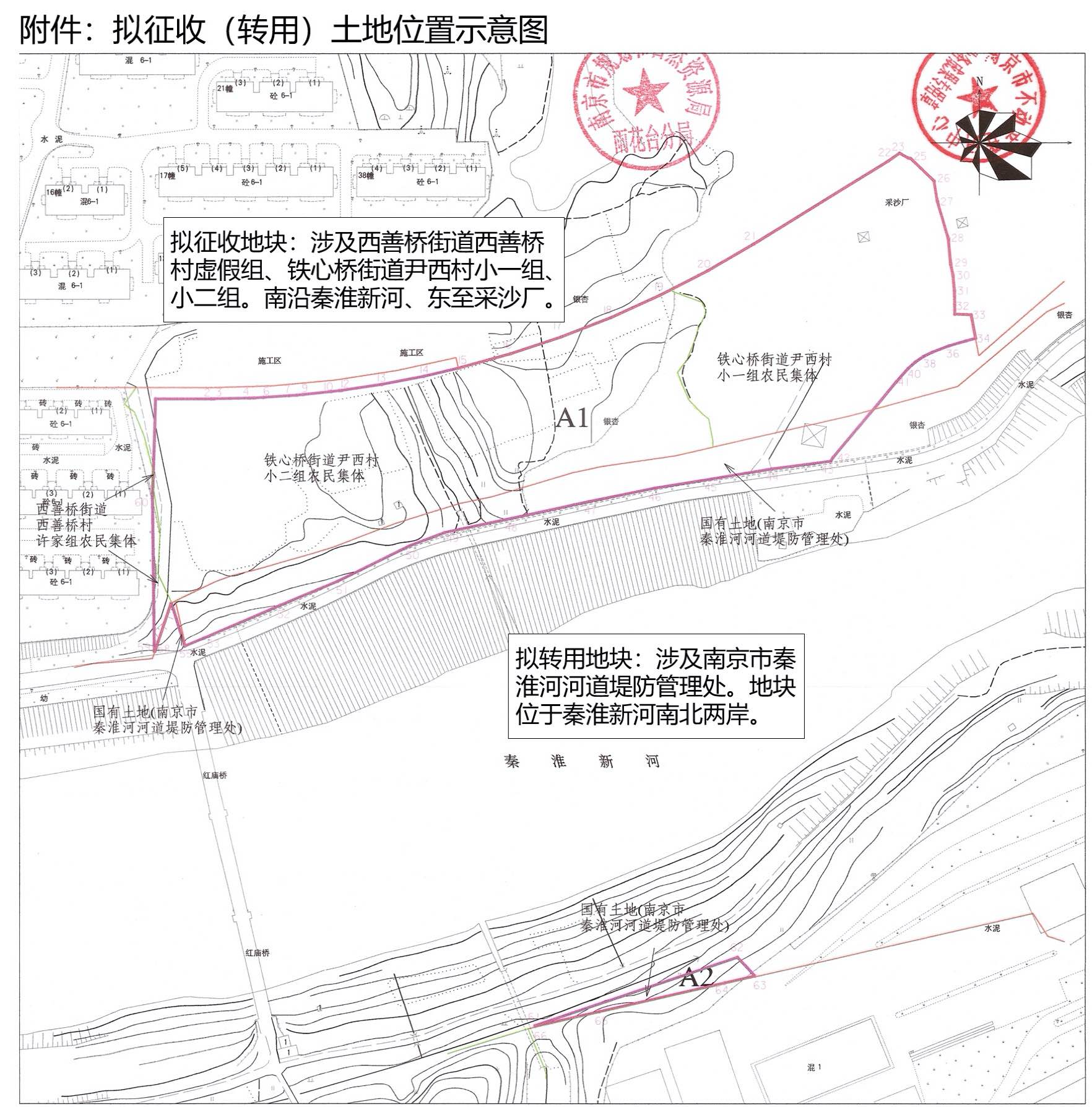 本次拟征收土地位于铁心桥街道尹西村小一组、小二组、西善桥街道西善桥村许家组农民集体范围内。拟征收土地位置详见附图。