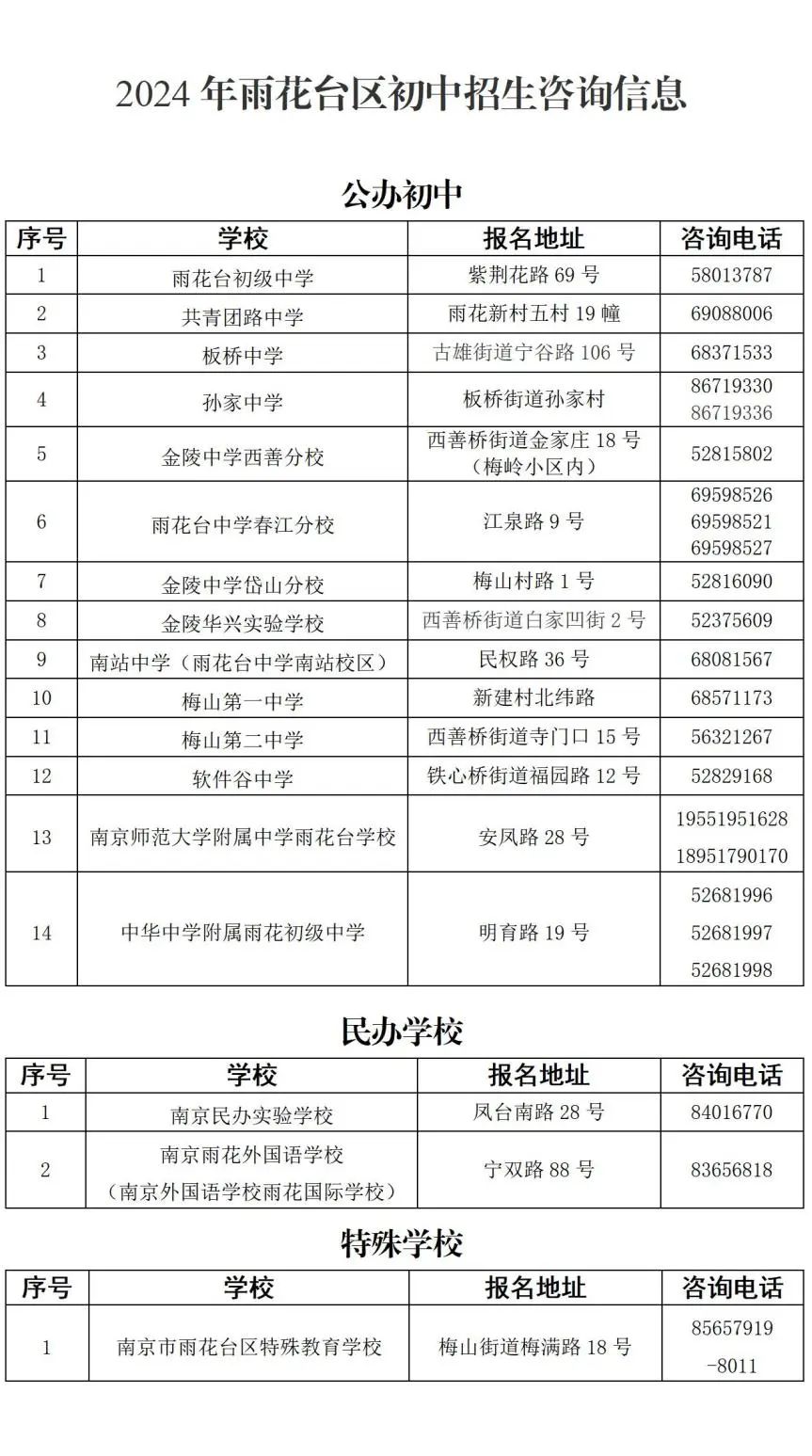 未尽事宜,请咨询雨花台区教育局普教科。咨询电话:52883584 52883595