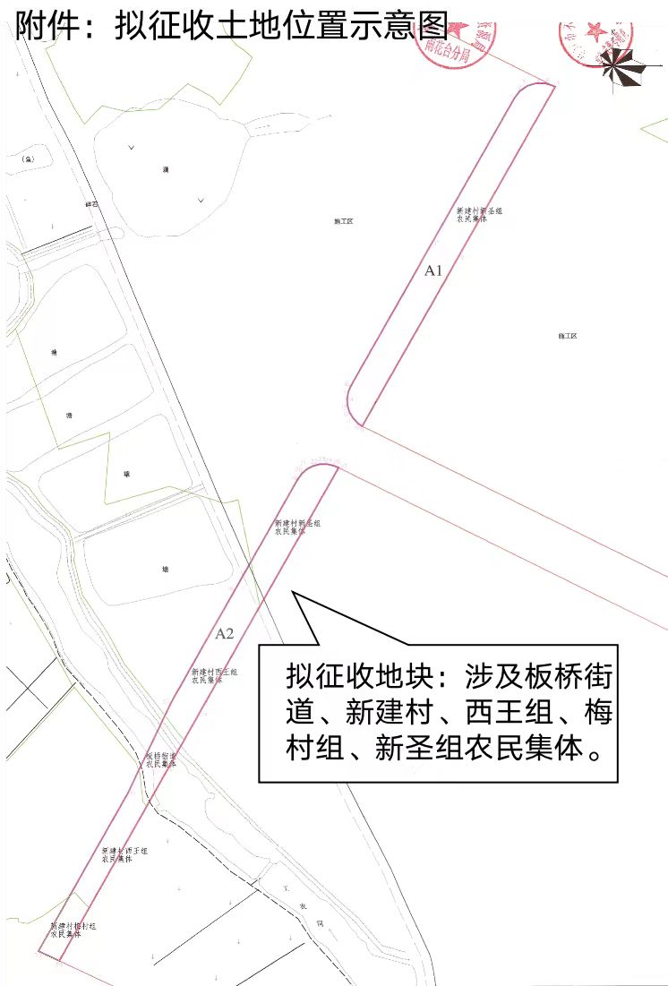 本次拟征收土地位于板桥街道集体、板桥街道新建村农民集体范围内。拟征收土地位置详见附图。