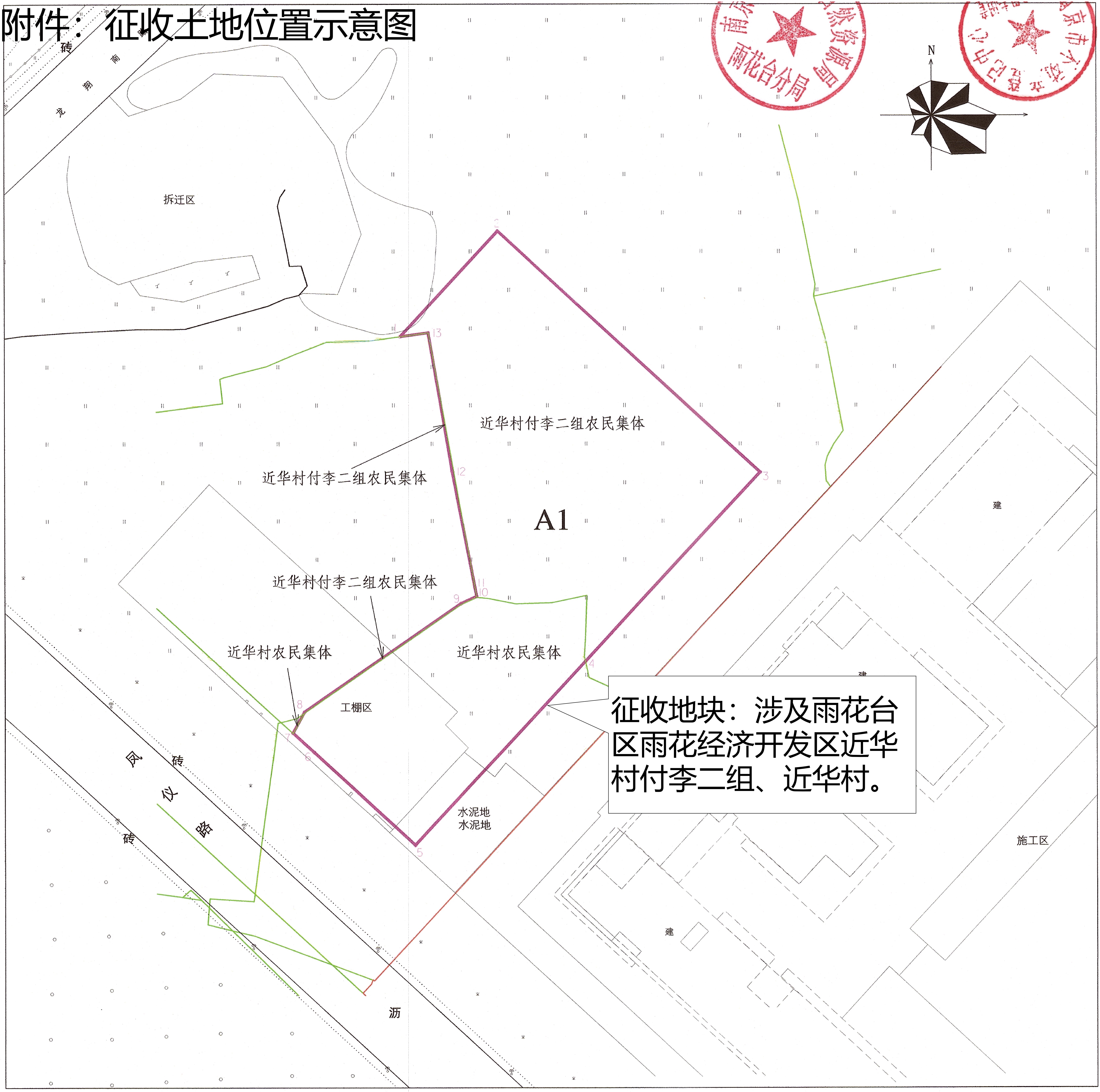 2024年7月12日,经《江苏省人民政府关于南京市雨花台区2024年度第1批次城镇建设用地的批复》(苏政地A〔2024〕94号)文件批准,同意征收我区雨花经济开发区集体土地0.7768公顷。根据《中华人民共和国土地管理法》《中华人民共和国土地管理法实施条例》《江苏省土地管理条例》《市政府关于印发南京市集体土地征收补偿安置办法的通知》(宁政规字〔2022〕4号)等规定,现将有关事项公告如下: