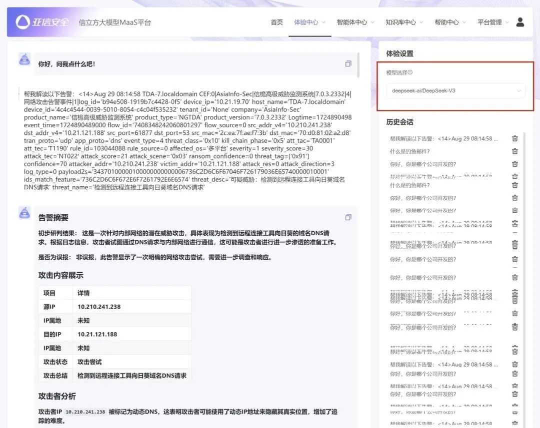 当前,亚信安全基于DeepSeek-R1作为基座,利用多年来积累的网络安全独家数据,进一步训练和提升“信立方”网络安全领域大模型;同时,基于DeepSeek MoE架构,整合网络安全专家模型。目前,新一代的“信立方”大模型在辅助安全运营、安全事件检测方面已初见成效。