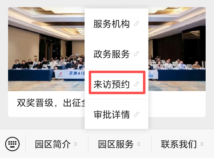 1.在“中国南京软件谷”下方菜单栏“园区服务”板块中点击“来访预约”。