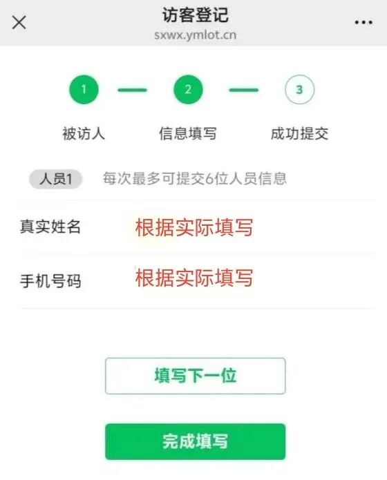 (2)填写访客本人信息,“姓名”和“手机号”。