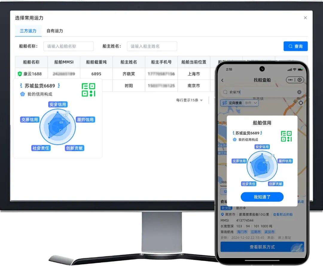 为落实 “三船” 信用分级监管要求,运吨吨将自身运力池分层标签体系与官方信用评价结果深度联动,创新打造吨吨信用码——构建 “信用评级-运力分层-精准匹配” 的全链路运营模式,既保障航运市场秩序规范,又有效降低物流中转成本与船舶空驶率,彰显信用管理的实践价值。