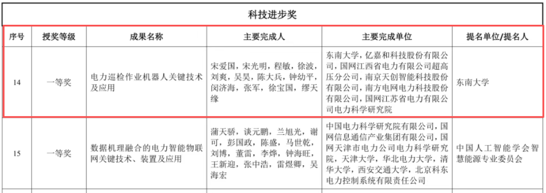 近日,我国人工智能领域最重磅的奖项——2025年度”吴文俊人工智能科学技术奖”获奖名单正式揭晓。由东南大学联合软件谷领军企业亿嘉和科技股份有限公司、南京天创智能科技股份有限公司等科研单位完成的“电力巡检作业机器人关键技术及应用"项目荣获2025年度吴文俊人工智能科学技术奖科技进步一等奖。