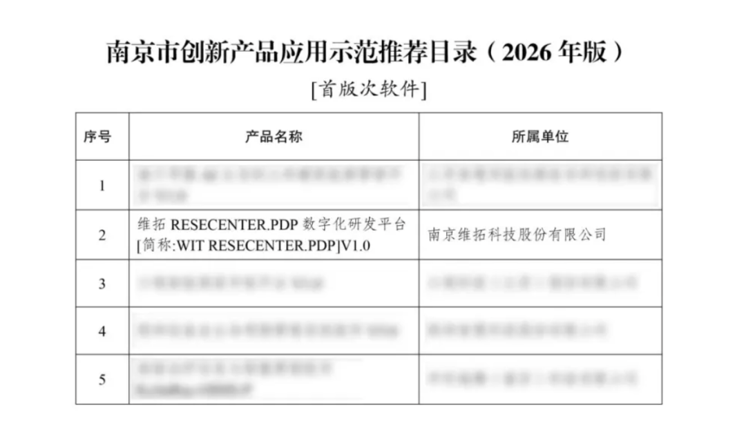 今年1月底,南京市工业和信息化局正式发布“2026年南京市创新产品应用示范推荐目录”,维拓科技自主研发的“维拓RESECENTER.PDP数字化研发平台”成功入选“首版次软件产品”,同时还获得了江苏省重点领域首版次软件产品以及国家信创产品认证。该产品打破国外垄断,不仅适配国产软硬件生态,还实现AI与工业软件深度融合。