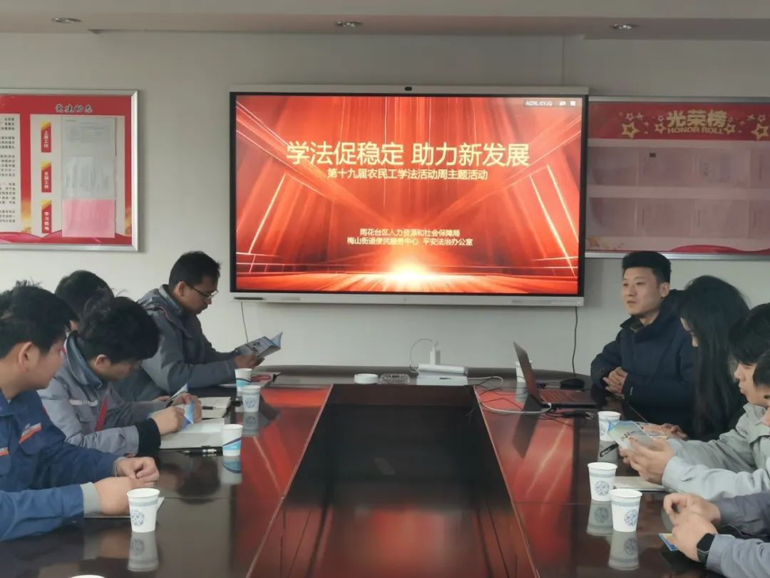 本周是第十九届“农民工学法活动周”,为进一步落实保障农民工工资支付制度,切实维护农民工合法权益,促进社会和谐稳定,2月14日上午,梅山街道便民服务中心在雨花台区人力资源和社会保障局的指导下、联合街道平安法治办公室,深入梅钢公司开展以"学法促稳定 助力新发展"为主题的普法宣传活动。