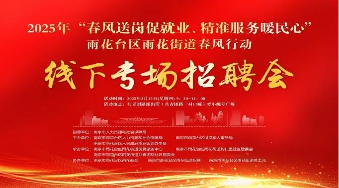 2025雨花台区雨花街道“春风行动”线下招聘会即将开启