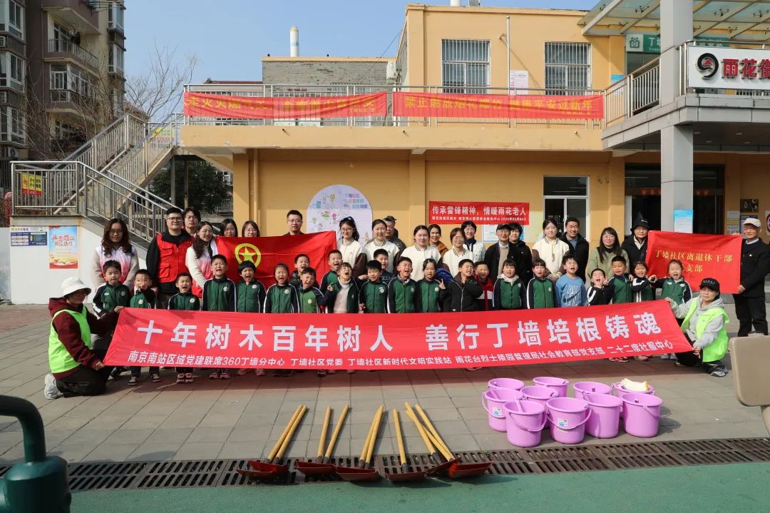 春和景明,万物竞发。在第47个植树节即将来临之际,为深化“雨您共建”,大力弘扬雷锋精神,发挥五老优势,厚植习近平生态文明思想、传承优良家风,南京市雨花台区雨花街道丁墙社区、丁墙社区离退休干部党支部、丁墙社区团总支联合雨花台区人大办、雨花台烈士陵园管理局社会教育部党支部、花神美境幼儿园共同举办了“十年树木百年树人 善行丁墙培根铸魂”主题活动。