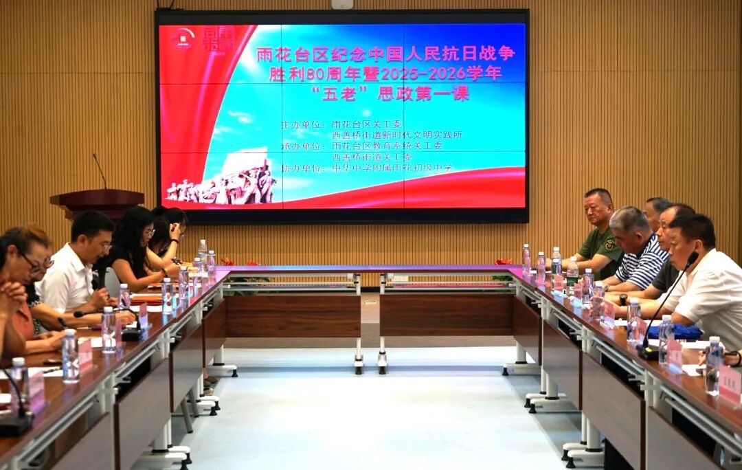 今年是中国人民抗日战争暨世界反法西斯战争胜利80周年,为深入贯彻习近平总书记关于老干部工作和学校思政课建设的重要指示精神,激活军休红色资源,推动 “一老” 传承红色基因、“一小” 涵养家国情怀,9月15日,由雨花台区关工委、西善桥街道新时代文明实践所主办,区教育系统关工委、西善桥街道关工委、街道民生服务办公室承办的 “红色思政进校园” 主题活动在中华中学附属雨花初级中学启幕,辖区9所学校千余名师生共赴红色文化之约。