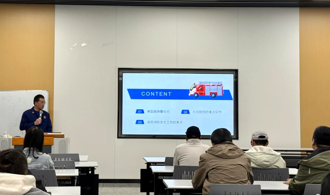 消防讲师围绕“典型案例警示”“火灾防控重点”“消防安全工作要点”三大板块展开讲解,结合真实火灾案例,深入剖析常见隐患,详细讲解日常防火、初期火灾扑救等实用知识。