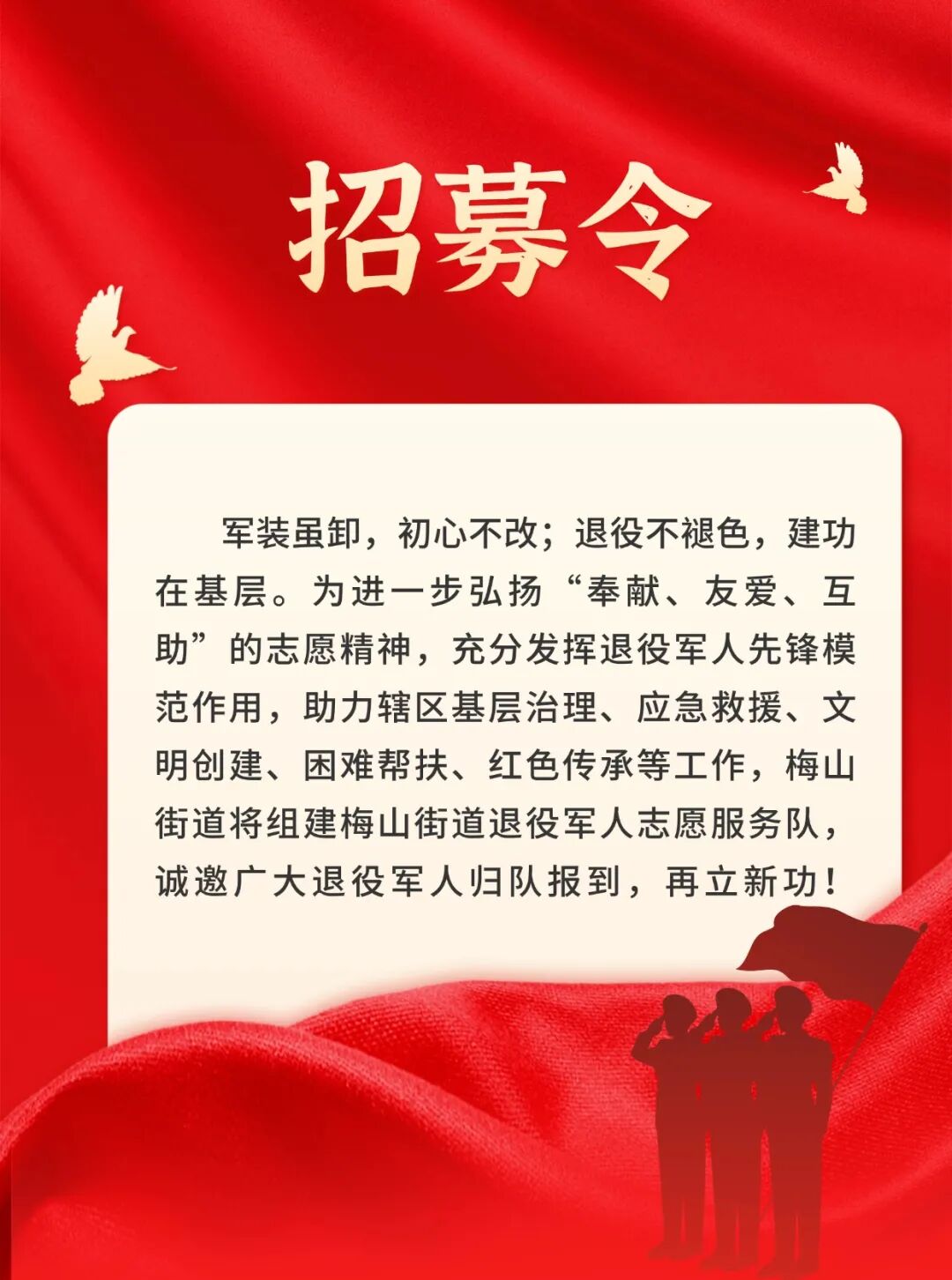 梅山戎光・志愿前行 梅山街道退役军人志愿服务队招募令