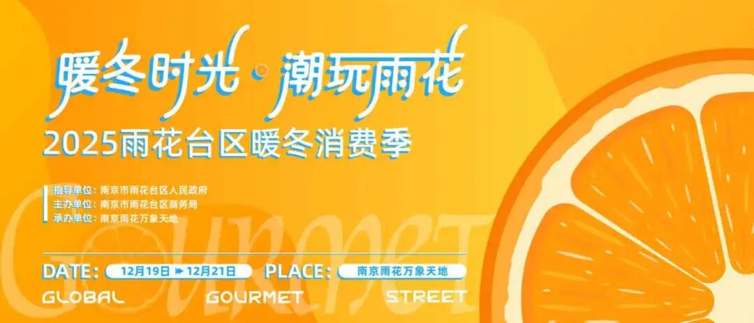 南京市雨花台区暖冬消费季暨首届国际美食荟将于12月19日至21日在雨花万象天地盛大举行。本次活动由南京市雨花台区人民政府指导,雨花台区商务局主办,南京雨花万象天地承办,以“暖冬时光·潮玩雨花”为主题,融国际美食、汽车展销、文创体验、街头演艺于一体,打造为期三天的沉浸式消费文化盛会。活动全面展现雨花台区在促消费、提品质、强氛围方面的积极作为,积极响应南京市建设国际消费中心城市号召,进一步丰富冬季消费供给,激发消费潜力。