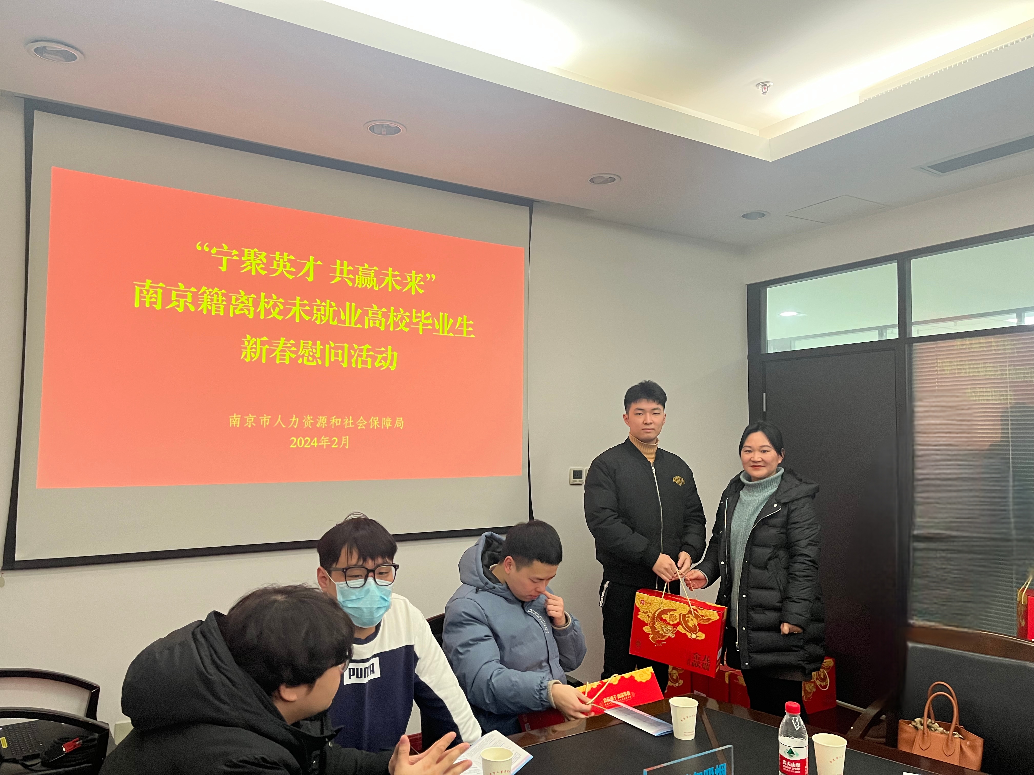 共赢未来”南京籍离校未就业高校毕业生新春慰问活动,为大学生们送上暖春大礼包,提供离校未就业高校毕业生“1311”(1次政策宣传、3次岗位推荐、1次职业指导、1次就业见习)帮扶服务,传递爱才、留才、求才的诚意与热情。