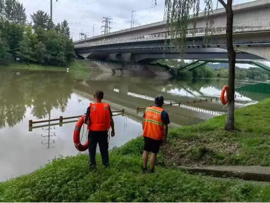 赛虹桥街道主任孙星带队检查防汛工作。街道在水位较高的河道亲水平台拉警戒线、增设栅栏,防止人员进入涉水危险区域。