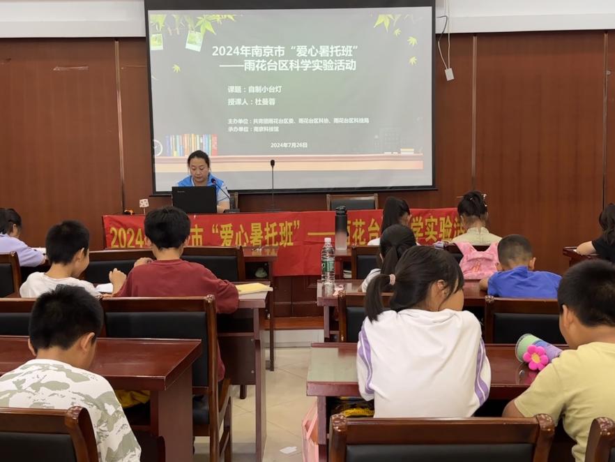 7月26日,科技辅导员毛绒绒老师走进梅山街道上怡新村社区,为雨花台区爱心暑托班的孩子们带来了一场充满创意与乐趣的《自制小台灯》科学实验活动课程。