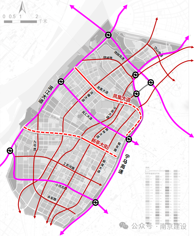 凤集大道、新亭大街是板桥新城规划的六横中的两横,对于提升片区建设发展具有重要意义。未来,道路将构建起西起滨江大道、东至新林大道的交通线,增强东西联络,促进区域发展。