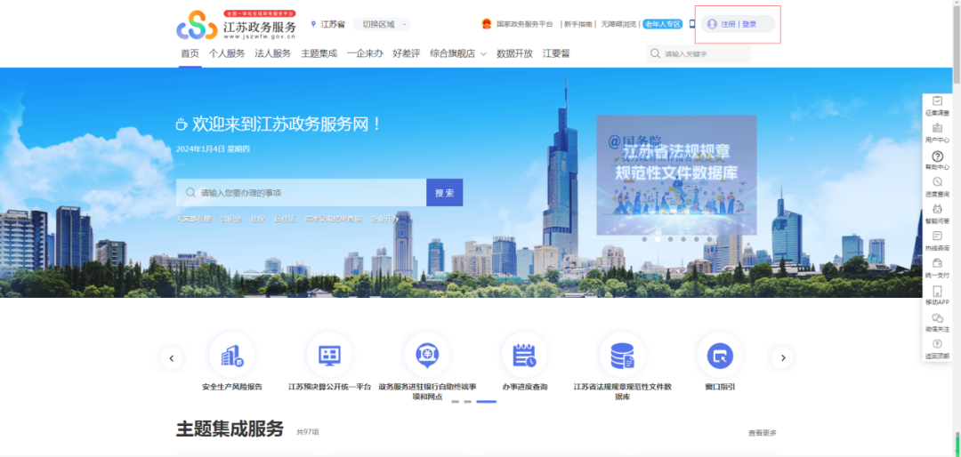 第一步:法人注册(登录)江苏政务服务网(https://www.jszwfw.gov.cn/);