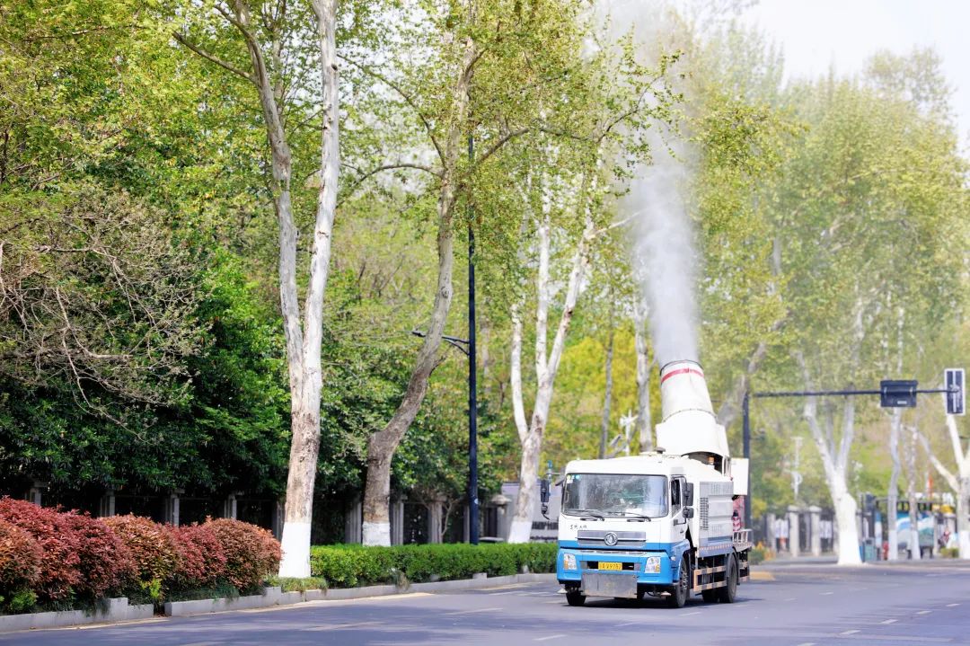 对软件大道、花神大道、雨花西路、雨花东路等飘絮管控道路,实行不间断雾炮降尘作业,通过喷雾作业增加空气湿度,加速毛絮沉降,搭配机扫车进行跟随清扫作业,并在12:00-15:00增加1次冲洗作业,有效清理毛絮。