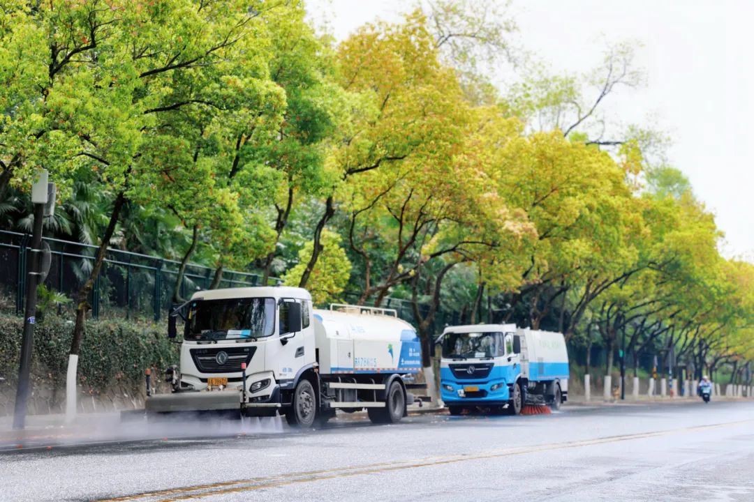 4月2日至4月23日,雨花润雨环境有限公司共出动保洁员7000余人次,出动机扫车、洒水车、抑尘车、单兵水洗车等机械化车辆6172车次,清理并清运飘絮垃圾约19.5吨,确保道路无积尘、见本色。