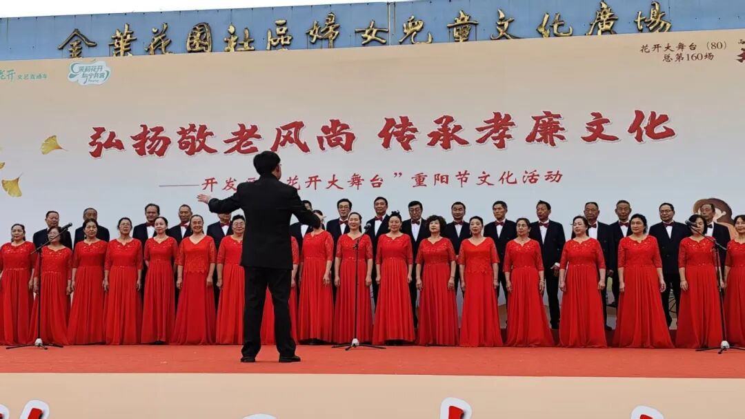 雨花经济开发区“花开大舞台”——重阳节文化活动在金叶花园社区广场温情启幕。活动以“敬老爱老”为核心,紧扣“敬老月”关怀主旨,开展了书法家赠吉祥墨宝、医护人员测血压查血糖、助老政策宣传、文艺汇演等活动,为辖区老人送上真诚暖意与美好祝福。