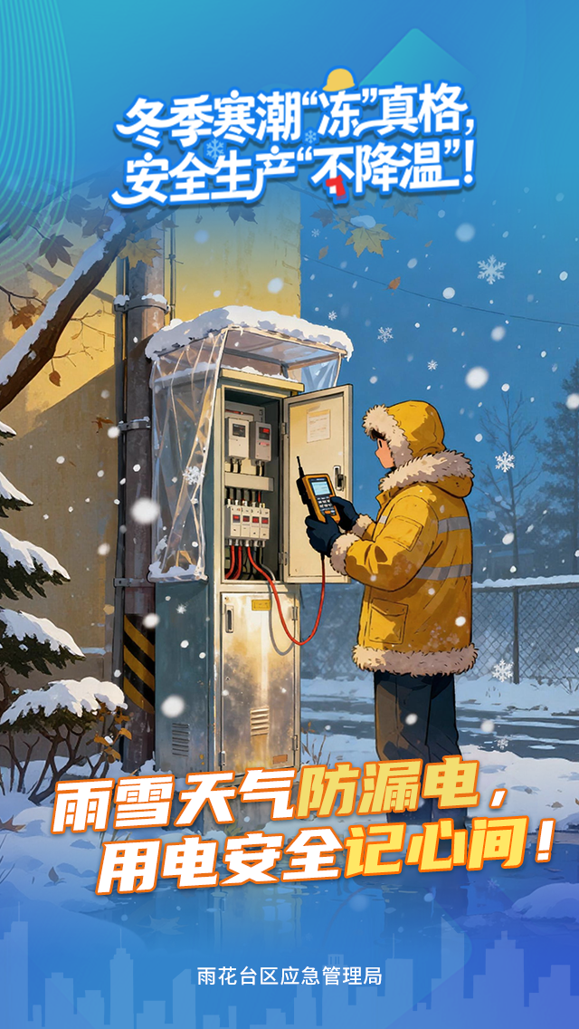 冬季雨雪天气增多,重点排查户外配电箱、临时线路的防雨雪防护装置,规范用电操作流程,在潮湿环境下作业需佩戴绝缘手套,严禁私拉乱接电线,人员离开时及时切断非必要电源。