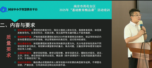 2025年,全区共上传“精品课”288件,区级评选入选165件,其中一等奖58件,二等奖107件。7月1日,雨花台区教师发展中心组织全区各学校“精品课”活动项目负责人及参与活动的教师共132人,开展“精品课”的录制专题培训活动,为教师们搭建了交流提升的平台,让精品课创作思路更清晰、技巧更娴熟,为后续佳绩的取得筑牢了坚实基础。