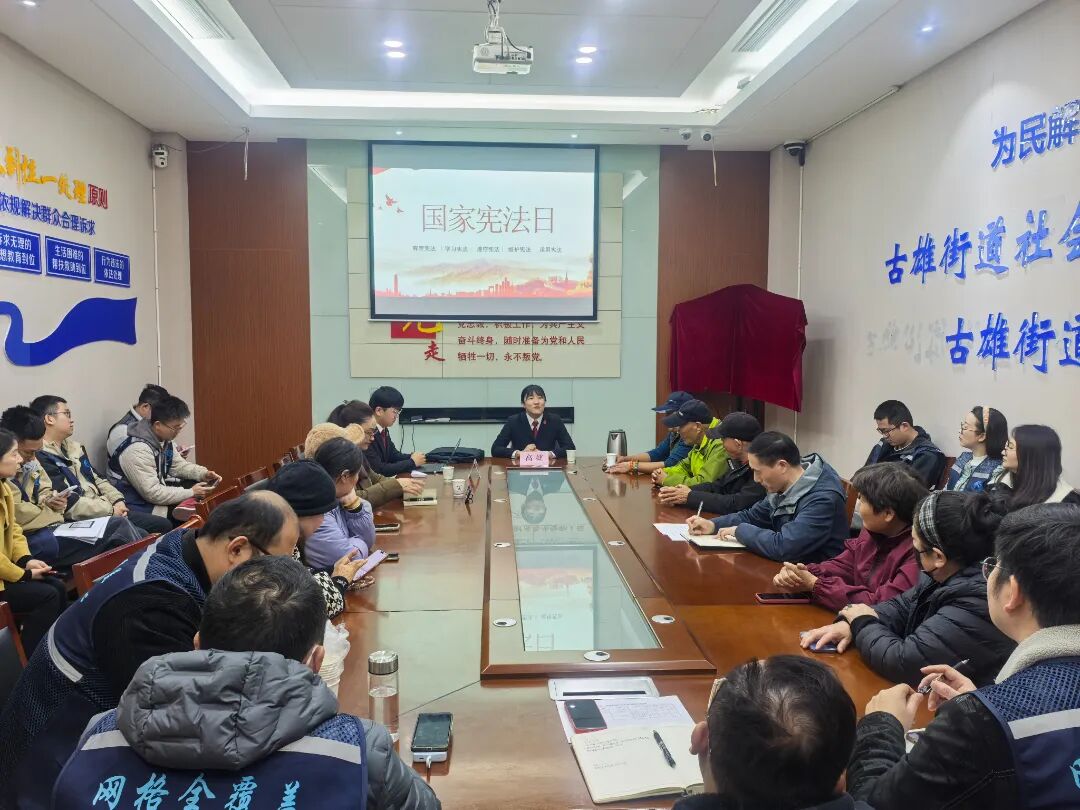 古雄司法所邀请板桥法庭法官为30余名社区法律明白人、平安志愿者、社区网格员介绍宪法相关知识,详细阐述公民的权利和义务、宪法宣誓制度、民法典等基本法律知识,强调宪法是国家的根本大法,拥有最高法律效力,既神圣不可侵犯,又与我们的生活息息相关,让大家对宪法和法律有了更加直观和深刻的认识。