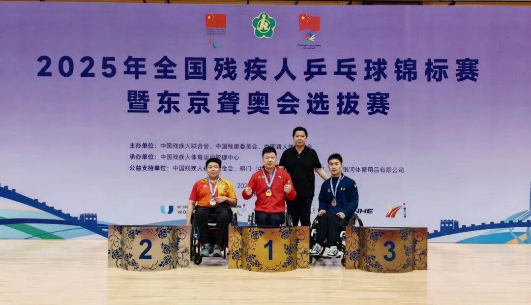 残疾人运动员石艳平在2025年全国残疾人乒乓球锦标赛暨东京聋奥会选拔赛勇夺男子MS4男子单打冠军