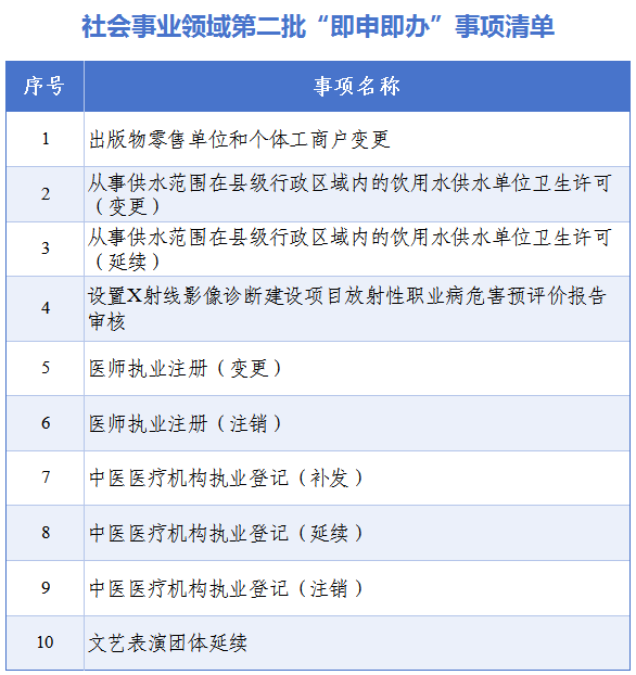 社会事业领域“即申即办”事项办理指南: