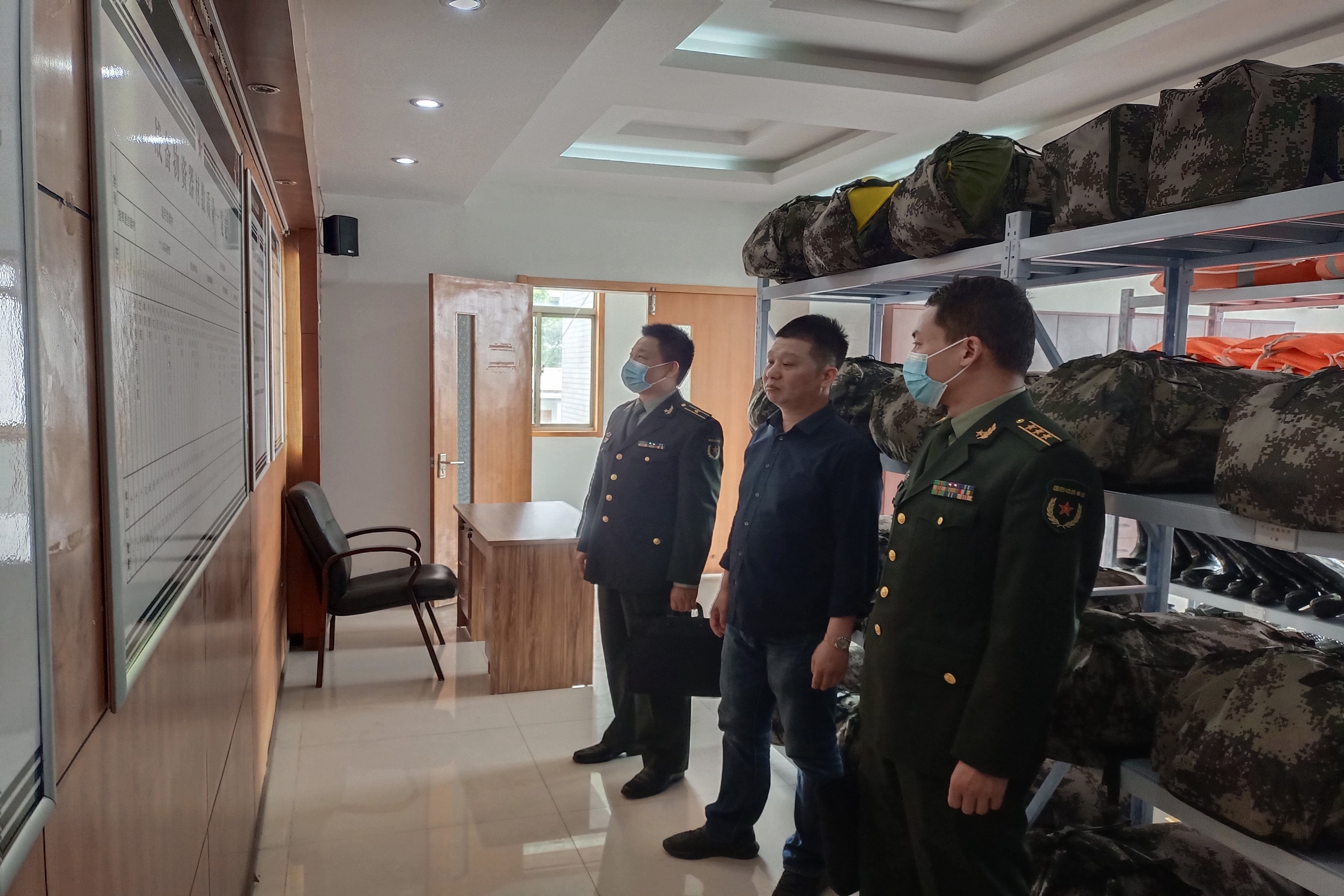 一行人随后实地查看了街道武装部“三室一库”建设,三山社区民兵营连建设推进情况。对基层武装部规范化建设工作及所获成绩予以充分肯定,并就进一步做好基层武装部、社区民兵营连等规范化建设工作提出了指导性意见建议。