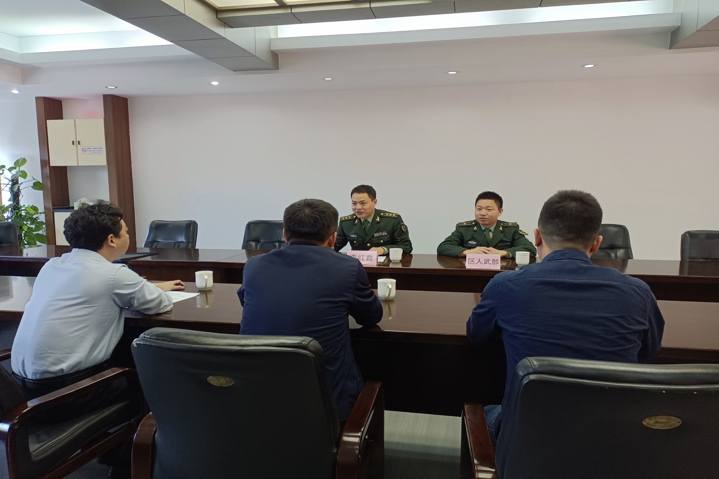 近日,雨花台区人武部部长李红鑫一行到板桥街道调研指导基层武装工作,板桥街道党工委书记刘善海、办事处主任武永杰、武装部长刘金钱陪同参加了上级调研指导活动。