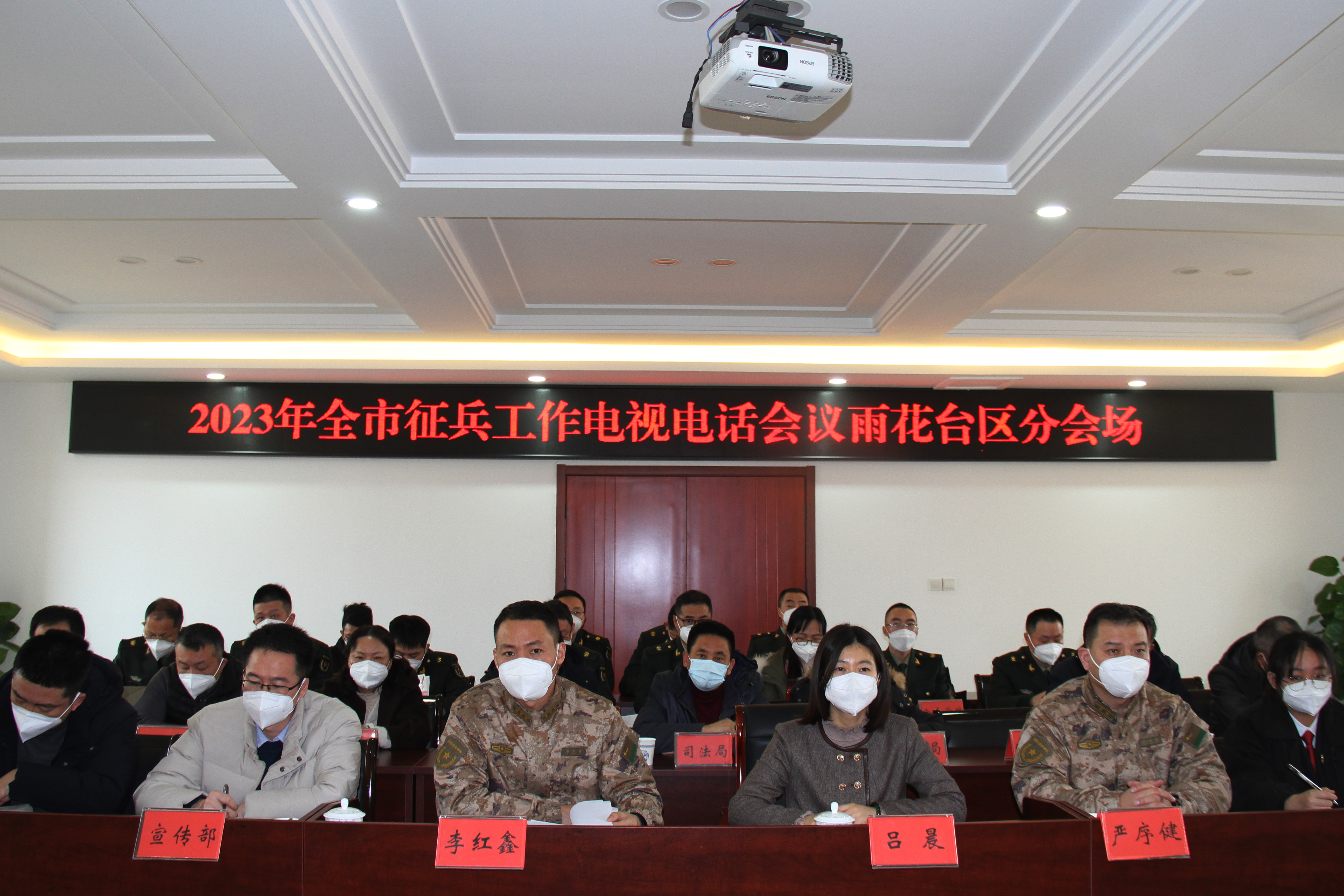 1月18日,2023年全国征兵工作电视电话会议召开,会议对今年两次征兵工作进行安排部署。雨花台区副区长吕晨、区人武部部长李红鑫、副部长严序健、征兵工作领导小组办公室主任陈虎、区委区政府各部门及各街道相关负责同志、专武干部在我区人武部分会场参加会议。