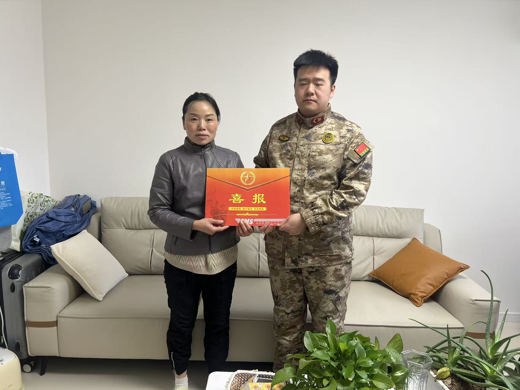 为进一步弘扬拥军优属的优良传统,增强军人军属的荣誉感和自豪感,营造“一人立功,全家光荣”的浓厚氛围,2月12日上午,开发区武装部为荣获2025年度“四有”优秀学员陈明瑄的家属送上喜报。