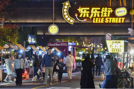 街区在改造的过程中充分听取意见:打造“特色、活力、烟火气”的美丽街区。在修复破损路面、为快递小哥规划5处车位的基础上,以“火车”和“快乐”为主题元素,街区取小名“乐乐街”。对门头店招、户外标牌、亮化设施统一进行升级,还在街区融入黄色笑脸涂鸦,设置火车车厢、站台标牌等景观,这些巧思成为片区的新地标和打卡点。去年10月开街以来,“乐乐街”日均客流5000人次,节假日达1万人次。