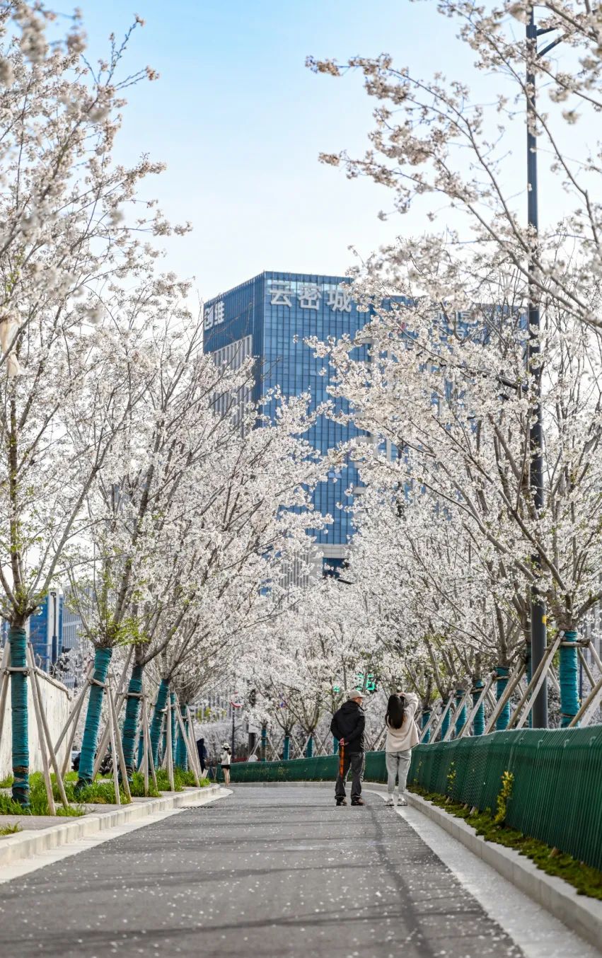 在软件谷云密城,有一条樱花大道。每到春天,粉色的樱花如云似霞,把这里点缀成梦幻的海洋,吸引许多人流连驻足。这条大道见证了雨花数字经济的蓬勃发展,也守护着每一位奋斗者的梦想与希望。
