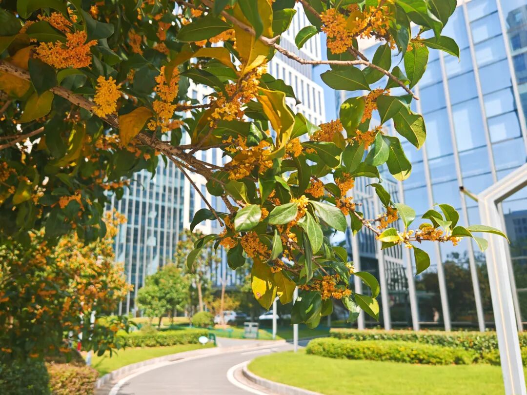 这个季节的软件谷,最动人的莫过于不经意间邂逅的桂花香。转角处、办公楼前,总有几株桂花树静静绽放。这份软件谷馈赠的秋日限定,无需排队,不问归期,只在某个转角与你悄然相遇。
