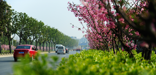 它的道路两侧及中央绿岛种植了1200株樱花树