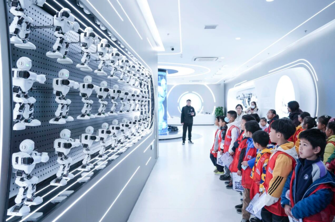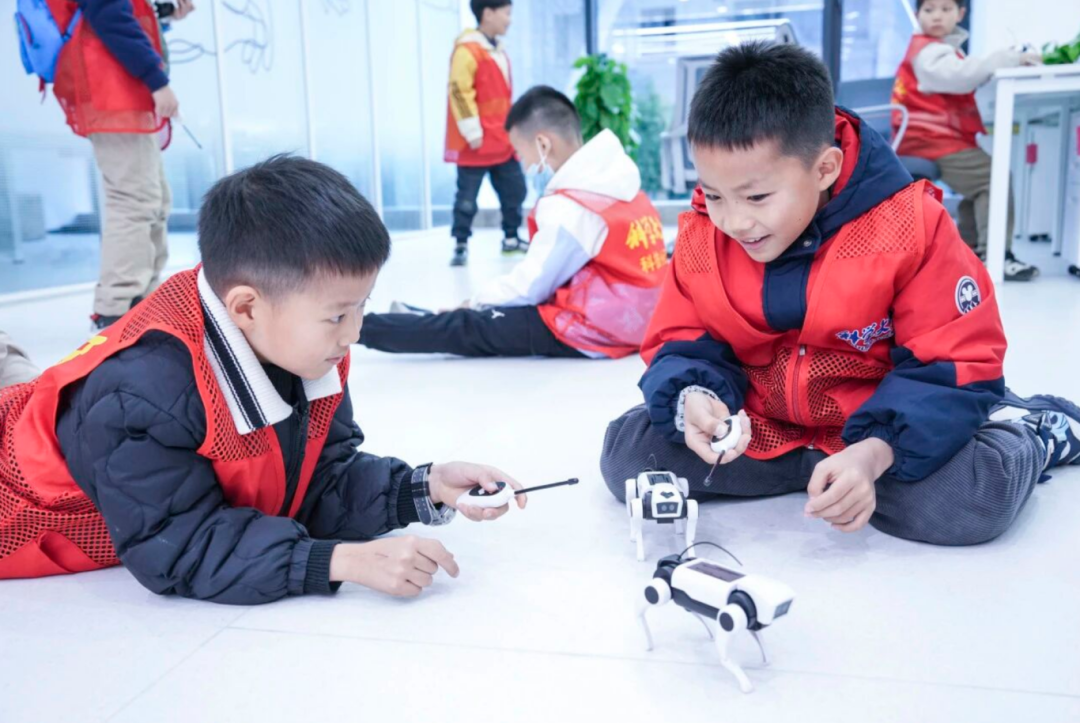 AI生产馆,通过专业讲解了解工业智能体技术,看AI如何高效完成编程、处理大数据,感受科技赋能产业的真实场景。AI生活馆,趣味互动体验接连不断——试戴AI眼镜感受酷炫视觉效果,和AI陪伴宠物亲密互动,与智能五子棋机器人来一场脑力对决,还能戴上专注力头环挑战火箭攀升游戏。AI体验区,有整面墙的“机器舞者”同步起舞,人形机器人玩转街舞、武术与拳击对决;孩子们还可以亲手操控机械狗完成前进、翻滚等动作,沉浸式感受人工智能的多元魅力。