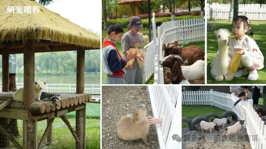 萌宠乐园:羊驼、卡皮巴拉、小香猪、小兔、孔雀、梅花鹿……超多萌宠集结,孩子们可以近距离观察它们的生活习性,互动投喂。园区工作人员还会定时开展萌宠小科普,让大家边玩边学,培养爱心与责任感。