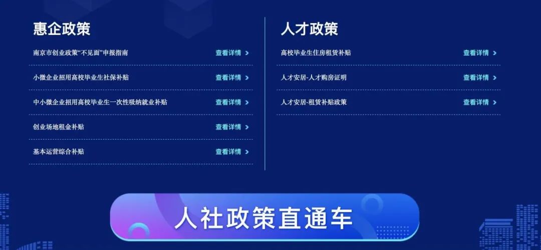“政策快车”模块 聚焦人社政策宣传场景,以静态政策发布与动态政策解读联动模式,通过补贴申请指引、申请平台一键链转、政策解读直播答疑等功能,助力服务对象一站式了解我区惠企人才政策,畅通人社服务“最后一公里”。
